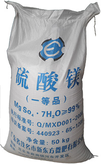 七水硫酸镁,又名泻盐、硫苦 = 镁黄氧,分子式: MgSO4.7H2 O ,分子量: 246.48 。 我公司生产的七水硫酸镁,系采用硫酸与天然镁矿石为原料而生产。本产品为白色或无色结晶体,无臭、凉并微苦,易溶于水,微溶于乙醇,在空气(干燥)中易风化为粉状,加热时逐渐脱去结晶水变为无水硫酸镁,本产品不含任何有毒杂质。可广泛用于制药、肥料、制革、印染、颜色、瓷器、火柴、防火材料以及镁盐的制造饲料添加剂等。